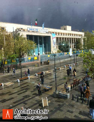 در میان بناهای عمومی که فروغی طراحی کرده است، ساختمان بانک ملی بازار، بسیاری از ویژگی های سبک او را نشان می دهد؛ این ساختمان با مساحت ۴۱۱۰ متر مربع، در دو طبقه و با استفاده از بتون مسلح ساخته شده است. هرچند طرح بنا مدرن است، در آن از اسلوب معماری ایرانی به شکل هنرمندانه یی استفاده شده است. در ورودی اصلی بانک کاشیکاری به کار رفته تا با نمای ورودی اصلی بازار تهران در روبه روی آن هماهنگ شود.