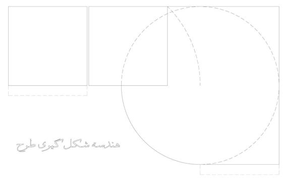 ابتدا با الهام از ساختار معماری هخامنشیان که تکرار یاخته های مربعی شکل است دو مربع 16*16 متر را کنار هم قرار دادم ، سپس مستطیل طلایی مربع سمت راست را ترسیم نمودم . به مرکز گوشه مستطیل طلایی دایره ای به شعاع طول ضلع مربع ترسیم کردم و سپس مستطیلی بر این دایره محاط نمودم . بدین ترتیب ساختاری برای شروع طراحی شکل گرفت .