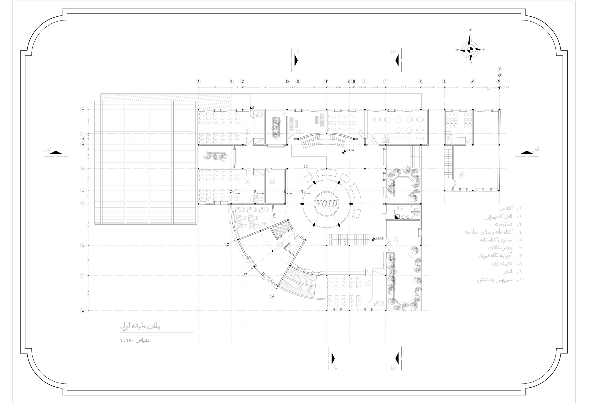 در ادامه طراحی با توجه به مساحتهای مورد نیاز طرح به این ساختار شکل گرفته قسمتهایی افزوده و قسمتهایی نیز کاسته شد .